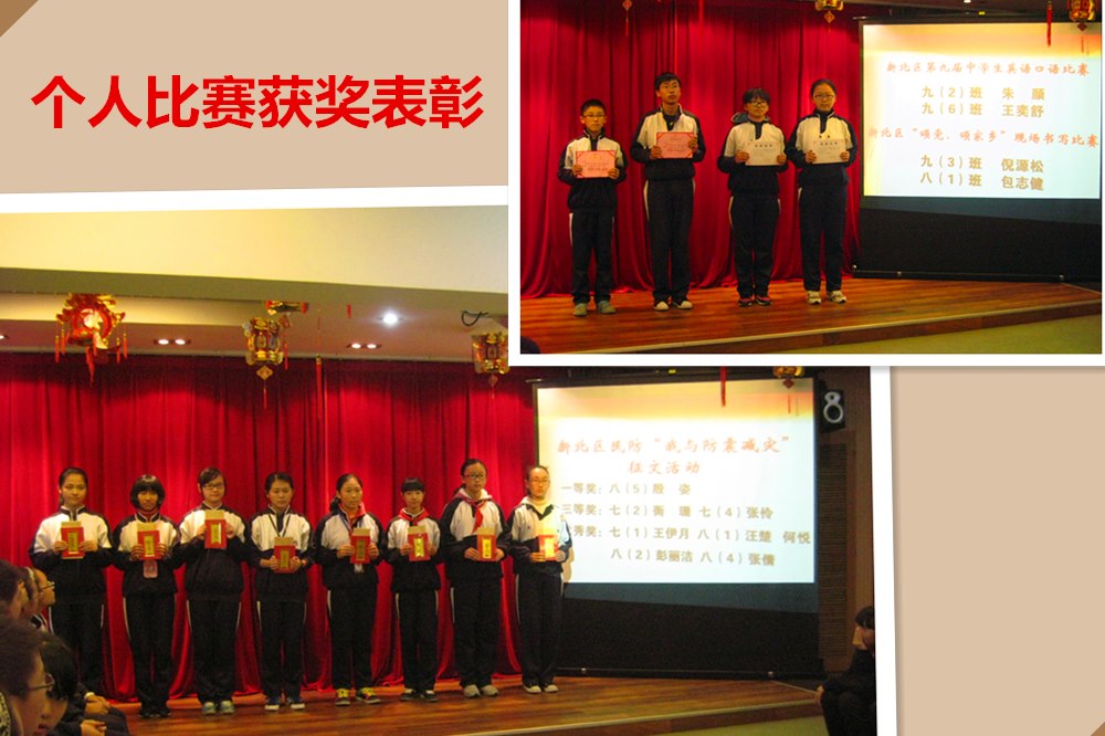 会上还表彰了市作文大赛中获得一、二、三等奖的学生,以及各班关心集体、工作负责、进步显著、劳动积极的学生。社会实践活动中七、八年级制作的优秀实践报告也在表彰大会上进行了展示,精美的实践报告,形式多样,令各班同学耳目一新。在整个表彰大会上,全校共219人次受到了不同形式的表彰,这些收获饱含了学生们孜孜不倦的追求与奋斗,饱含了所有老师的辛勤汗水,也饱含了父母长辈们的深情叮咛和殷切希望。