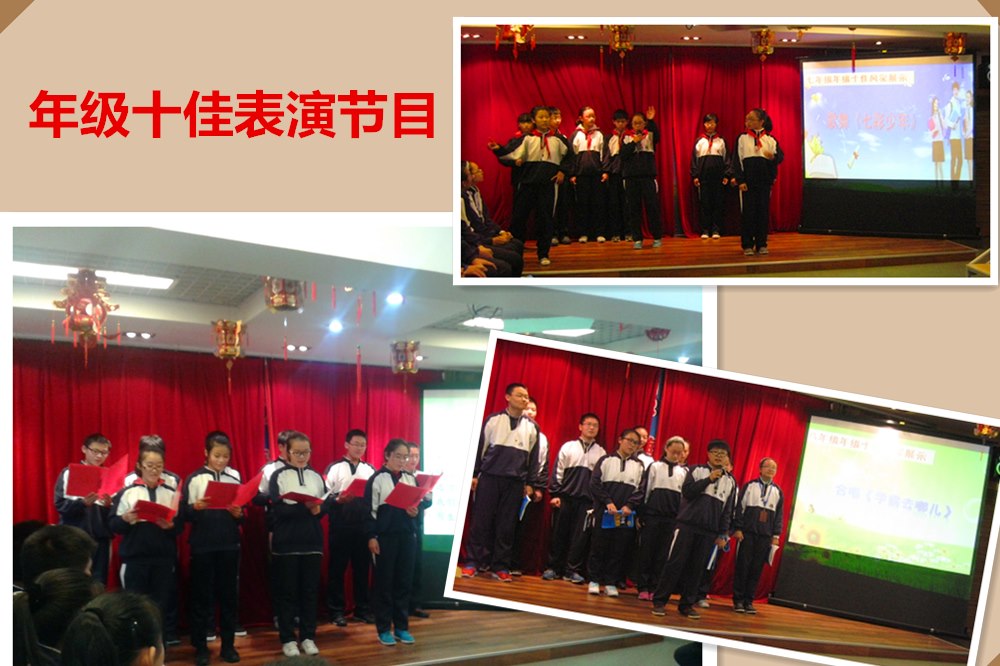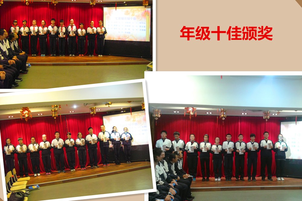 在当天的表彰大会上,三个年级的十佳走上领奖台,领取他们通过积极努力,顽强拼搏而取得的沉甸甸的收获。在表彰会上,这些年级“学霸”们有的歌舞并举演绎英文歌曲,有的合唱改编后的娱乐节目主题曲,有的进行励志朗诵,还有跆拳道动作秀。不同形式的表演展示了学霸们在学习以外多才多艺的一面,让同学们眼前一亮。