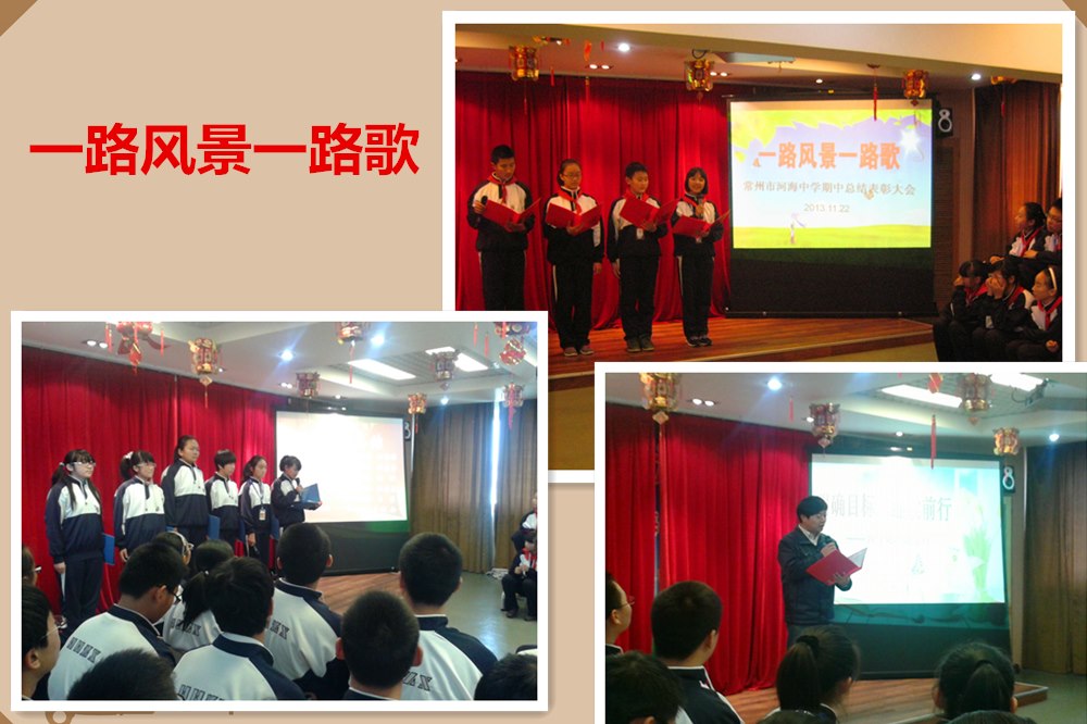 青春的意义,在于我们用勤奋和努力为生命镀上夺目的色彩。我们青春的花朵初绽,在这个难忘的金秋时节,同学们又一次经历了检验播种、体会收获的期中调研。11月22日,常州市河海中学举行了2013-2014学年度第一学期期中表彰大会,共同庆贺在期中阶段取得优异成绩和各方面进步的同学。同时总结付出与收获,为下一站的旅程做准备。