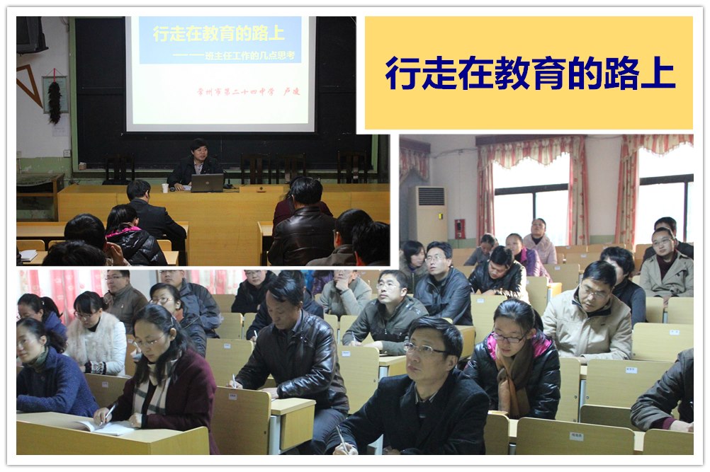 紧接着是荣获2012年长三角地区班主任基本功大赛一等奖,现任河海校区教导处主任的卢凌和青年教师们一起分享了自己从教的“心路”——《行走在教育的路上》。卢主任结合8年的班主任工作以及参加班主任大赛的经历,真诚地讲述了自己对教育的认识和探索过程,“学生需要的就是我们最应该努力付出的”、“教育就是要触摸到学生心底最柔软的部分”……一句句朴实却又鲜活的话语引起了在场所有人的共鸣。