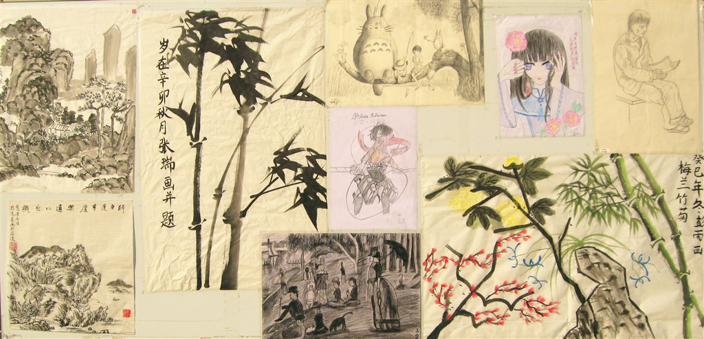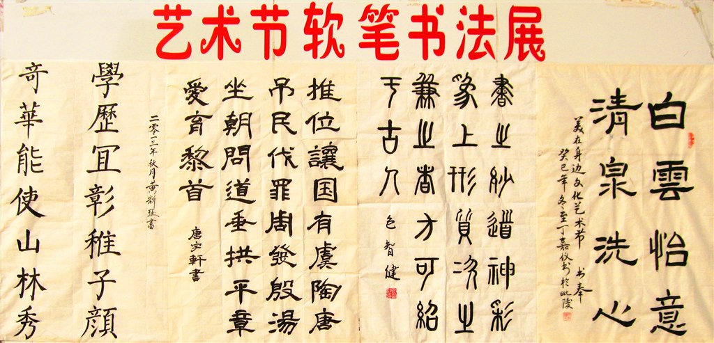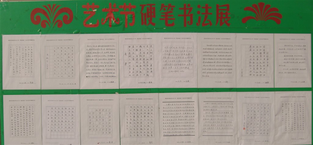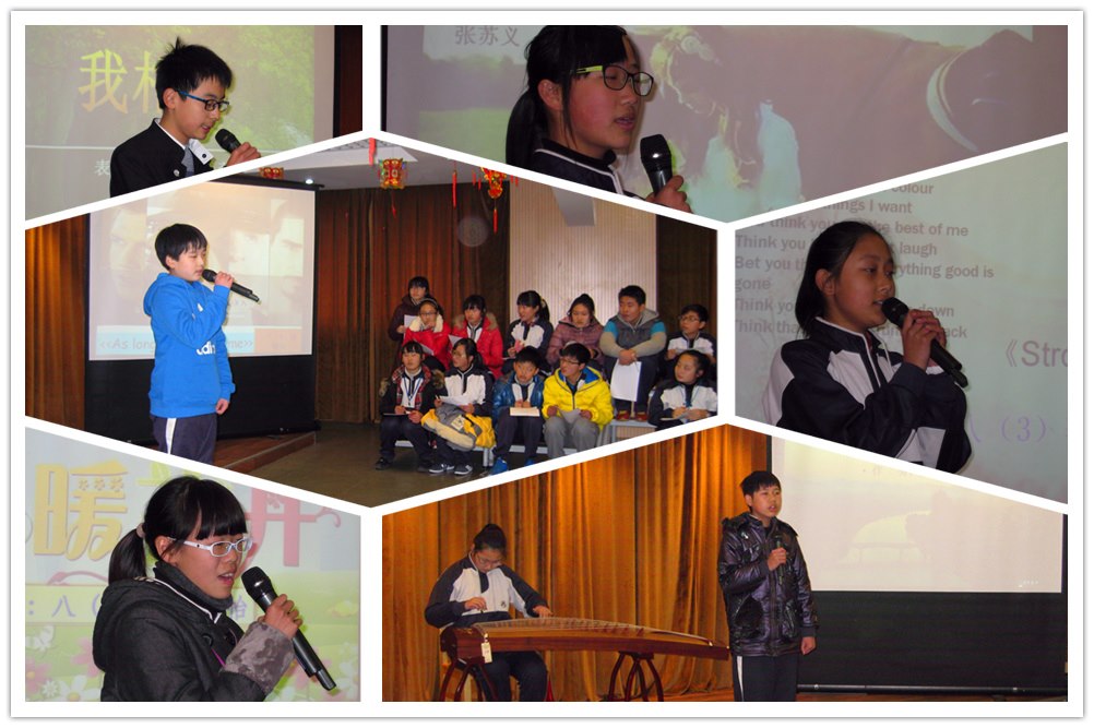 学生们盼望已久的卡拉OK声乐比赛在演播室举行,选手们满满自信,尽情地挥洒自己的个性与激情,比赛现场气氛热烈,同学们积极参与其中。在舞台上,他们也许会有些小失误,但他们那自信的眼神、大方的表现,不时赢得了同学们的掌声。在所有表演者的身上都可以看到那种永不言败的精神,不论结果如何,他们都是最棒的。七(5)班夏燕同学甜美的演唱征服了在场所有的观众,八(4)班焦健同学的成熟演唱技巧也给大家留下了深刻的印象。。。节目精彩纷呈,大家都将对音乐的热爱融入赛场,通过交流和学习,他们学会了欣赏和团结。另外,学生设计的节徽、海报、绘画、书法、摄影、黑板报也别具特色,充分展示了自身的艺术才华,他们以饱满的激情,挥毫泼墨,聚焦精彩。