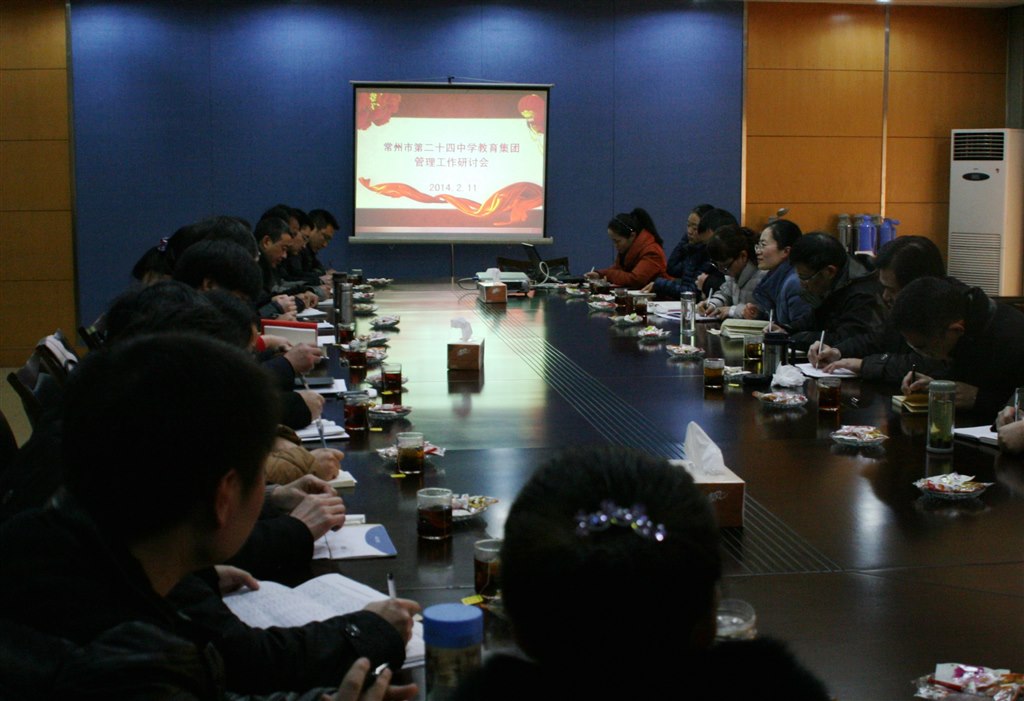深度融合,提升品质。天宁分校赵敏慧校长从“领导关心,希望与压力同在”、“集团重视,融合与共赢相伴”、“行动推进,机遇与挑战并存”与大家分享集团一体化办学以来天宁分校在办学历程中各级领导的关心、教育集团的大力支持以及办学举措。河海中学蒋顺国校长以深度融合为关键词,指出适应集团化办学,一是理念的引领从“心”上融合,二要水平的提升从“行”上融合,三应管理的完善从“思”上融合,强调为了二十四中教育集团更好发展,管理团队必须树立“服务只有起点,满意没有终点”的意识。集团总校长赵卫勇充分肯定了在一体化办学过程中各校区领导团队、中层管理团队的所作所为,并就一体化办学提出新学期工作思路:认真学习十八大、十八届三中全会精神,推进教育改革向纵深发展;加强教育集团制度建设,整合教育资源,努力提升教育集团管理水平;加强集团内队伍建设,用先进文化影响人,用教育科研引领人,用灵活的机制激励人,壮大优秀教师队伍;加强对德育活动的引领,提升育人的品质;提高教师课改的自觉意识,建设充满情趣、富有活力的课堂,培养学生自主学习的能力;推动信息化建设,用技术推动教学变革,抓好试点、大胆实践、逐步推广;继续落实各项教学常规,规范教学行为,切实做好减负增效工作。进一步做好学生的养成教育、礼仪教育,建设美丽校园;培育学校特色项目,加强科技教育、艺体教育,做强特色,促进学生个性发展;进一步统筹规划校园改造,增强其教育服务功能。