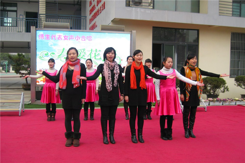 春暖花开 老师和学生代表共同表演的女声小合唱《春暖花开》,在一片温馨祥和的气氛中完美地演绎着,悠扬的歌声、优美的动作、和谐的配合,让师生们融入了美妙的意境,沉醉其中,久久不能平静,在柔和的歌声、融洽的气氛中开学典礼圆满结束了。让我们带着美好的心愿,与春天一同耕耘,让我们吹响前进的号角,去开始新的征程,让我们共同期待春暖花开!