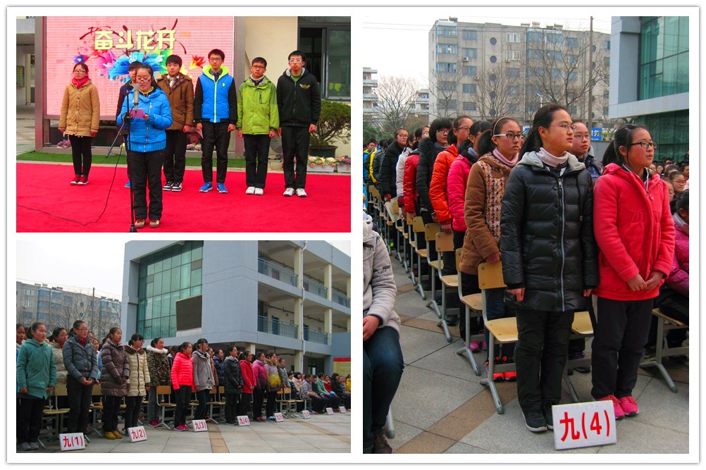 奋斗花开 有这样一个群体,他们是等待破茧的蛹,是准备接受六月洗礼的海燕。九年级全体同学犹如战马出征,壮志凌云。各班铿锵有力的青春宣誓喊出了心声,喊出了气势,喊出了活力,让我们感受到他们“舍我其谁”的信念和气魄。在这个万马奔腾的季节,他们将踏着中考的节奏,让青春的光华闪耀,让奋斗的花儿怒放!
