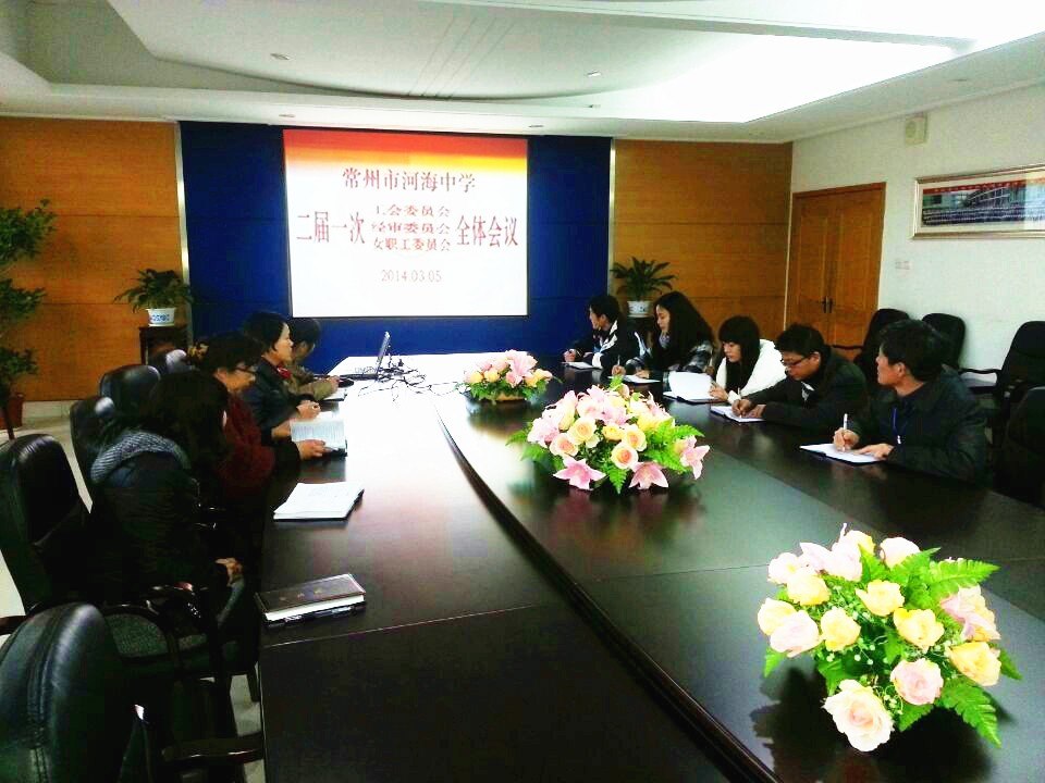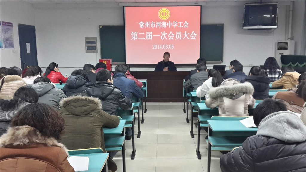 2014年03月05日下午,常州市河海中学召开了工会第二届一次会员大会,全体工会会员参会议政。本次会议主要议程为工会换届选举。