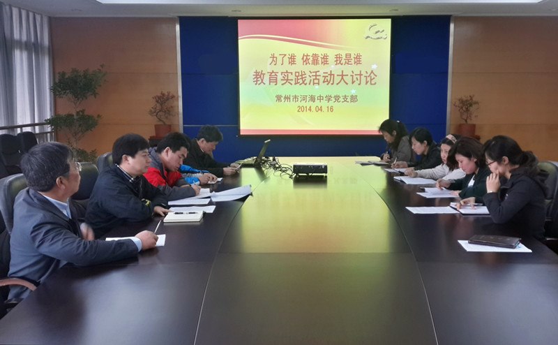 为深入推进党的群众路线教育实践活动,着力提高党员思想认识,强化党员群众观念,04月16日下午,常州市河海中学党支部开展了“为了谁、依靠谁、我是谁”大讨论活动。