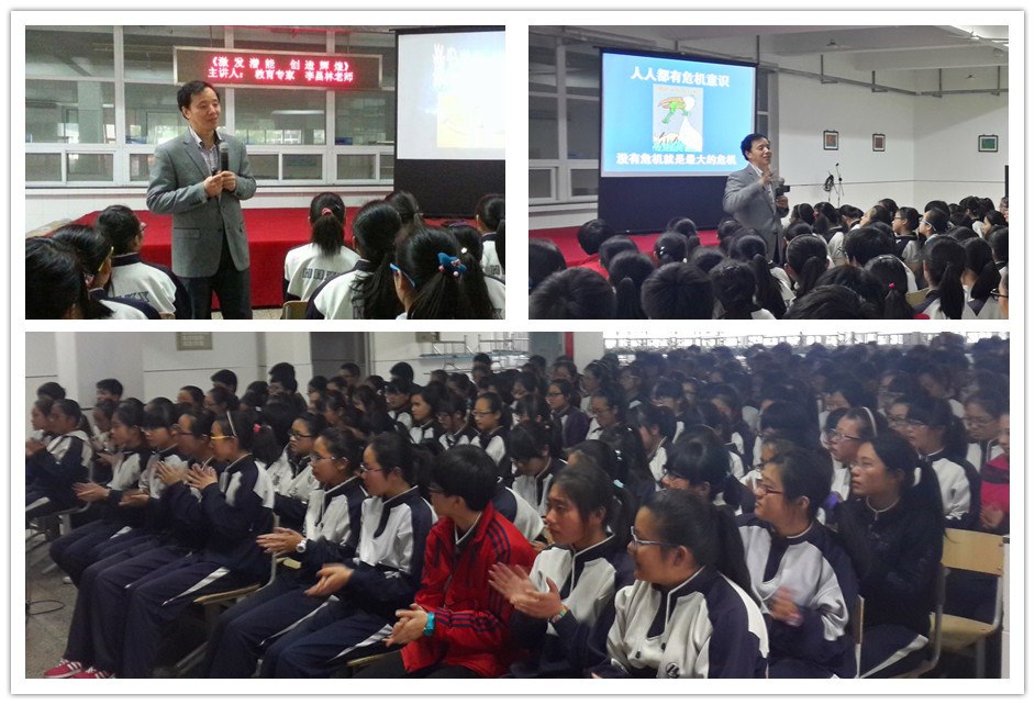 李老师用切身的体会和鲜活的例子,感染了我们所有人。用一幅幅令人发省的图片,触动我们的心灵;用深厚的心理学知识,化解我们成长中的困惑;用诙谐幽默的语言启迪我们理解“成功的人行动,失败的人在等待”的人生哲理;用语重心长的语调告诉我们 “人生要有信念”、“生气不如争气”的人生箴言。在李老师的引导下,同学们像是打开了记忆的闸门,找回了曾经在游戏或小说中迷失的、遗忘的、错过的记忆片段;重温了在河海中学的三年里,那些由父母、老师和同学带来的感动。泪水悄然落下,一如同学们那百感交集、思绪万千的内心。