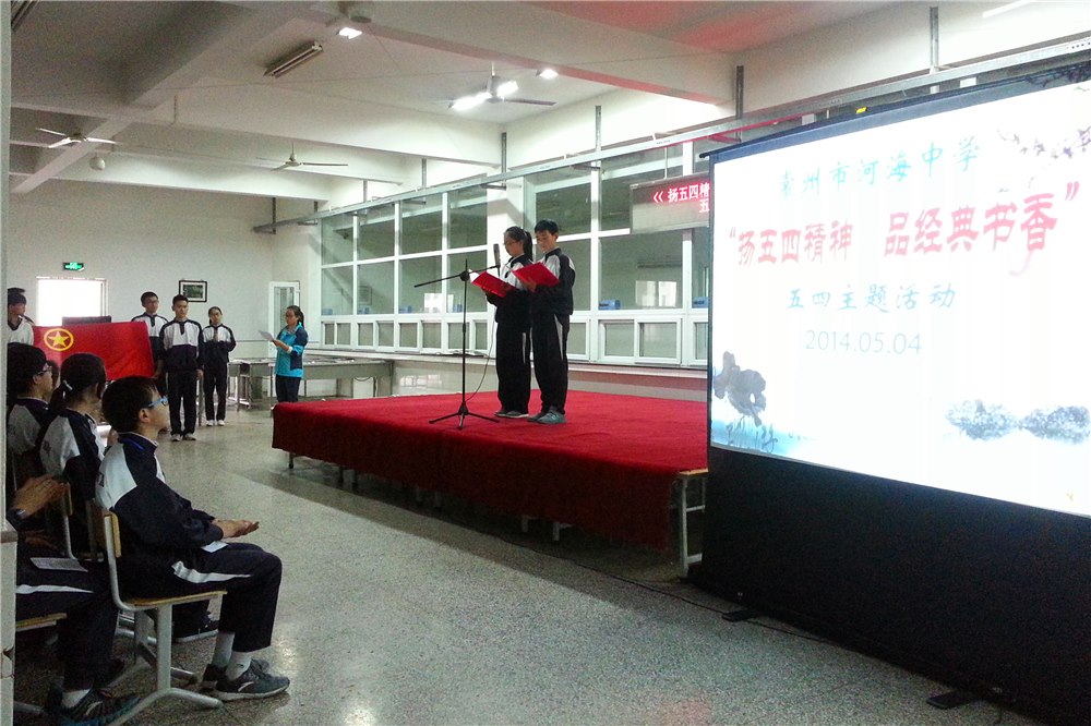 “我们是五月的花海,用青春拥抱时代;我们是初升的太阳,用生命点燃未来…”在《光荣啊,中国共青团》铿锵有力的旋律中,我们迎来了第95个五四青年节。为了纪念这个特殊的日子,05月04日下午,河海中学团委开展了“扬五四精神,品经典书香”的主题活动。