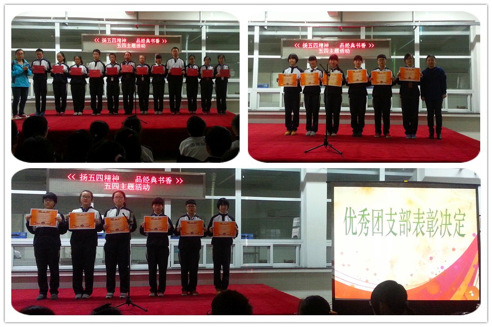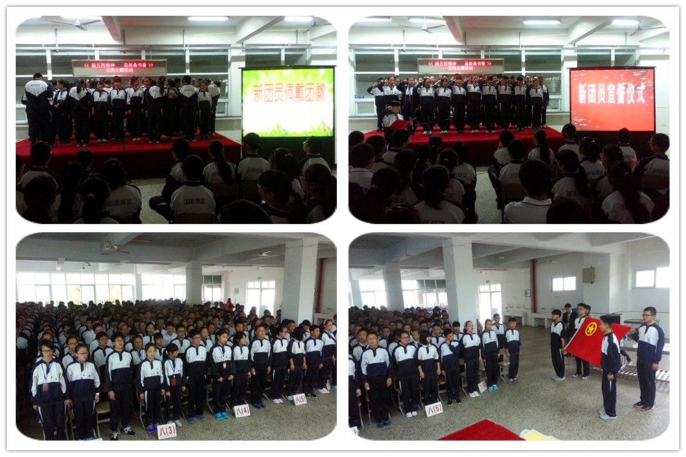 精彩的诵读比赛之后,校团委朱虹书记和教导处王国坚主任分别宣读了校优秀团员和优秀团支部的表彰决定,并勉励受表彰的团员和团支部再接再厉,带领全体同学继续努力,再创佳绩。校团委委员张学敏老师宣读了新一批加入共青团的同学名单,校学生会主席程安同学带领全体新团员进行了庄严的宣誓仪式,将整个活动推向了高潮。