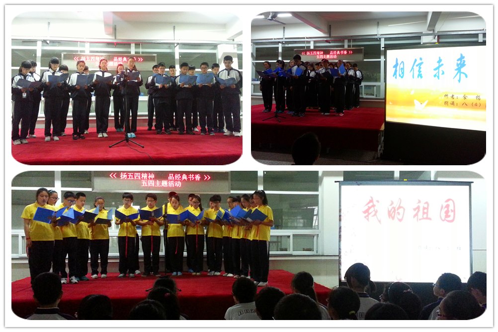 参加诵读比赛的八年级各班围绕活动主题,选择了一篇篇经典诵读名作,用饱满的热情、真挚的语言演绎着作品的神韵:八(1)班《祖国啊,我亲爱的祖国》、八(2)班《青春中国》和八(5)班《我的祖国》共同表达了同学们强烈的爱国之情和历史责任感;八(3)班通过《青春万岁》诠释着同学们对青春的独特理解与认识;八(4)班和八(6)班带来的《相信未来》和《理想》述说着同学们对美好未来的向往和不懈追求。参赛选手的全情投入,打动了在场的所有观众,赢得了一阵阵热烈的掌声。经过激烈的角逐,最终八(1)班荣获一等奖,八(3)班和八(5)班荣获二等奖,八(2)班、八(4)班和八(6)班荣获三等奖。
