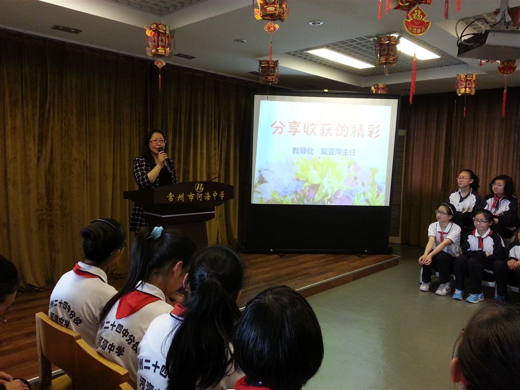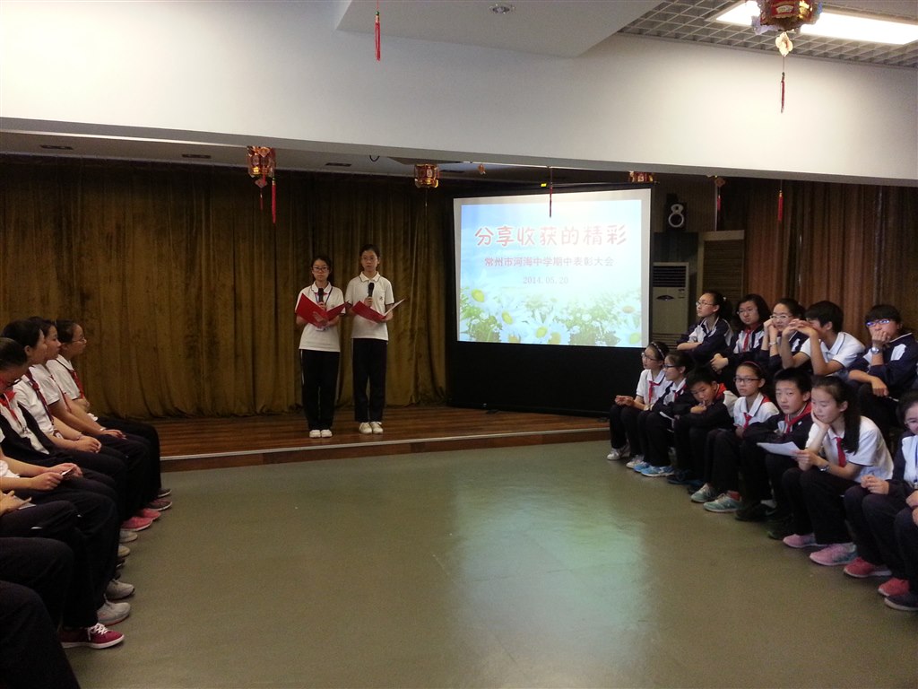五月的风,吹在脸上,已能感受到初夏的微热。转眼间,一学期已经过了一半多的路程,辛勤汗水,换来了丰硕成果。05月20日,常州市河海中学举行了第二学期“分享收获的精彩”期中表彰大会。在本次大会中,作为主持人的我们也倍感兴奋和紧张,我们站在台上和大家一起分享收获的精彩。