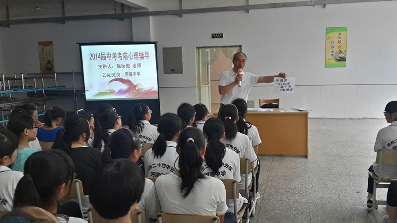 中考是一次冲刺,是一次演练,是从今天走向明天。中考不但是一次学业水平的测试,更是对同学们心理的一次考验。鉴于此,河海中学于06月08日邀请了常州市教育服务中心心理咨询师赵世俊老师,为全体九年级学生做了中考心理辅导讲座。
