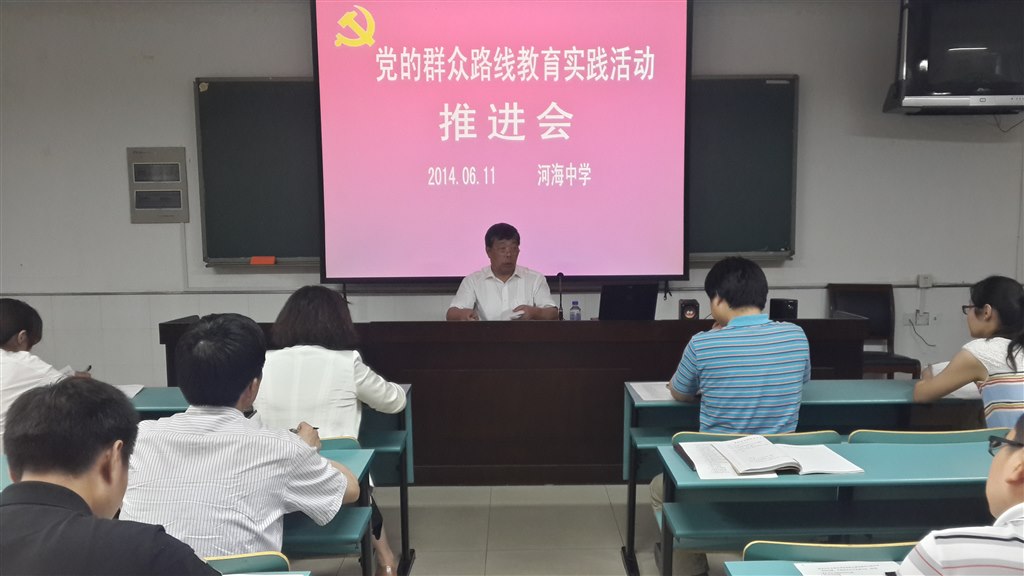 为了更好地推进党的群众路线教育实践活动, 06月11日,河海中学党支部邀请二十四中党总支陈怡书记来校给全体党员和入党积极分子上了一节生动的党课。