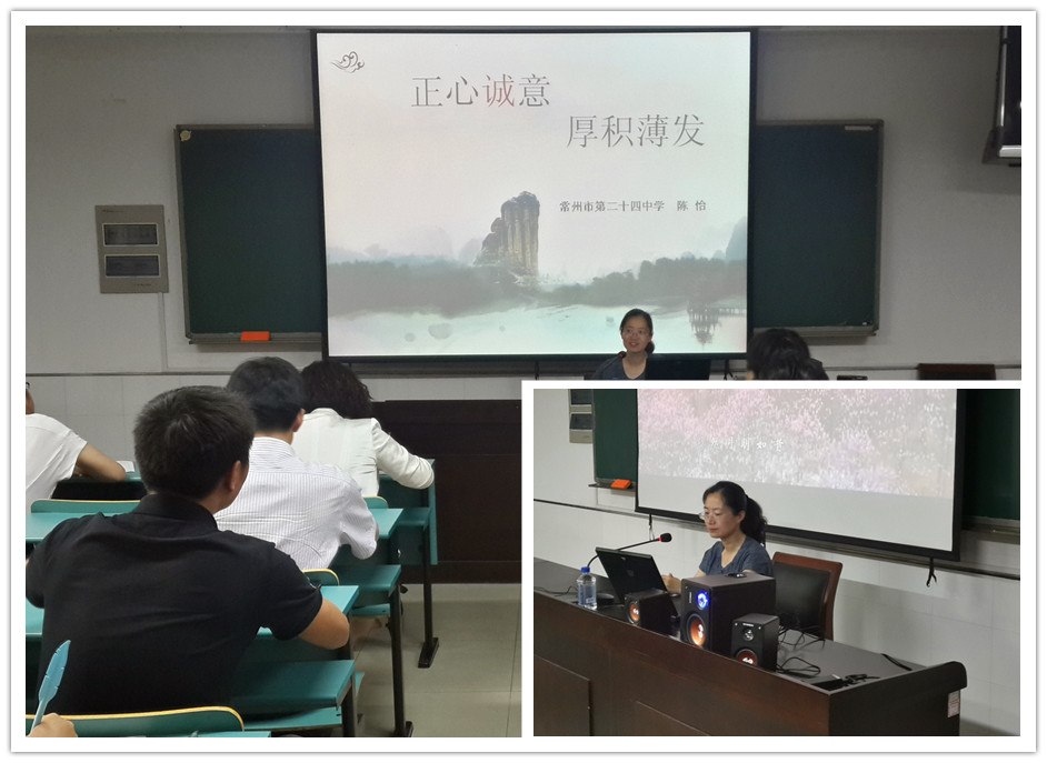 其次,陈怡书记通过展示身边的道德楷模、师德典范让大家体会“提高道德修养、欲正其心先诚其意”的立德根本;用亲近文史哲经典和“琴心剑胆”的班主任艺术让大家品味“涵养人文素质,叩问心灵反身而诚”的教育智慧;用热门的高考作文命题来深思教师培养跨学科素养的融合性,激励大家“提升科学素养,虔诚追求知识和真理”,用“诚心”来铸就教师工作的传承性,创新性和示范性。
