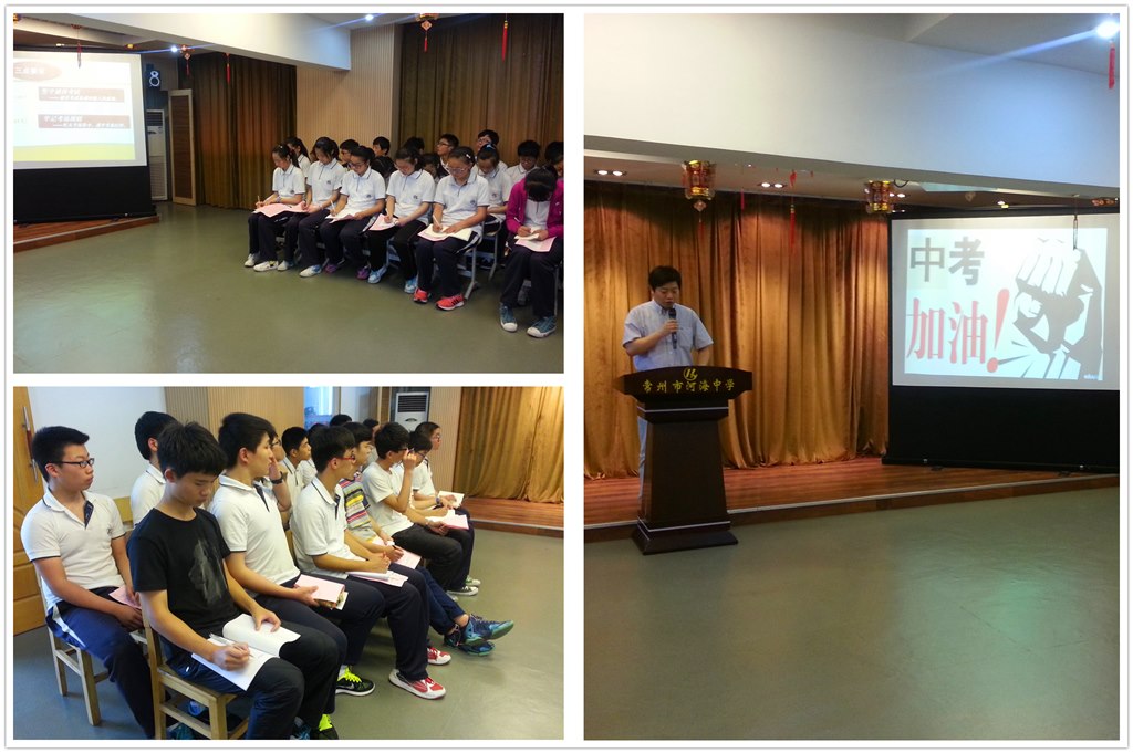 卢主任提醒同学们:牢记考场规则、坚守诚信考试,规范考试程序;考前做好思想、知识、生活等方面的准备;考试过程中的答题方法与策略,每门考试后的注意点。以“瓦伦达效应”为例,强调中考期间要保持信心、专心、细心、恒心的良好心理品质。卢主任的讲话,情真意切,语重心长,殷殷期望,切切叮咛,让同学们倍感亲切,倍受鼓舞。四位男老师与同学们共同演绎一首《真心英雄》,唱出了同学们争创佳绩的雄心和豪情,唱出了同学们的从容和自信。