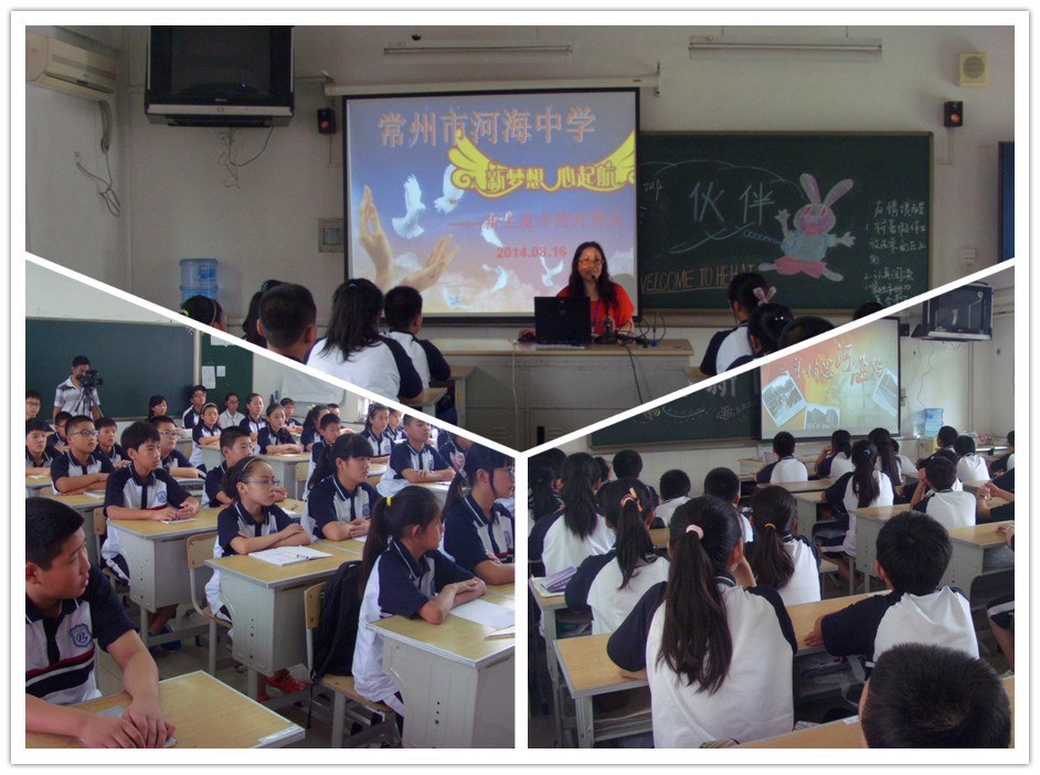 我们还听了教导处戴主任讲话,虽然我没有一字不落地全部记住,却让我对河海的一切都有了更深的认识,让我对自己选择这所学校感到高兴,没有看走眼,让我对这里有了更加深厚的情感,我还记得七年级学生代表陈雨彤的发言中有一句话让我难忘,那也是学校的一句座右铭:迎着晨风想一想,今天该怎样努力,踏着夕阳问一问,今天有多少长进。我们还有幸听到曾经毕业河海,如今就读者省常中的学姐讲话,我在心里默默地对自己说:这也是我的努力方向。