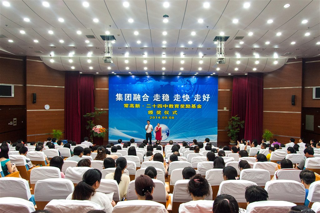 秋风送爽迎佳节,桃李含笑报园丁。09月08日上午,常州市第二十四中学教育集团举行教师节暨常高新·二十四中教育奖励基金颁奖仪式。常高新集团领导、二十四中、河海中学、天宁分校全体教师齐聚省常中太雷厅共庆第30个教师节,为集团融合再添新活力。