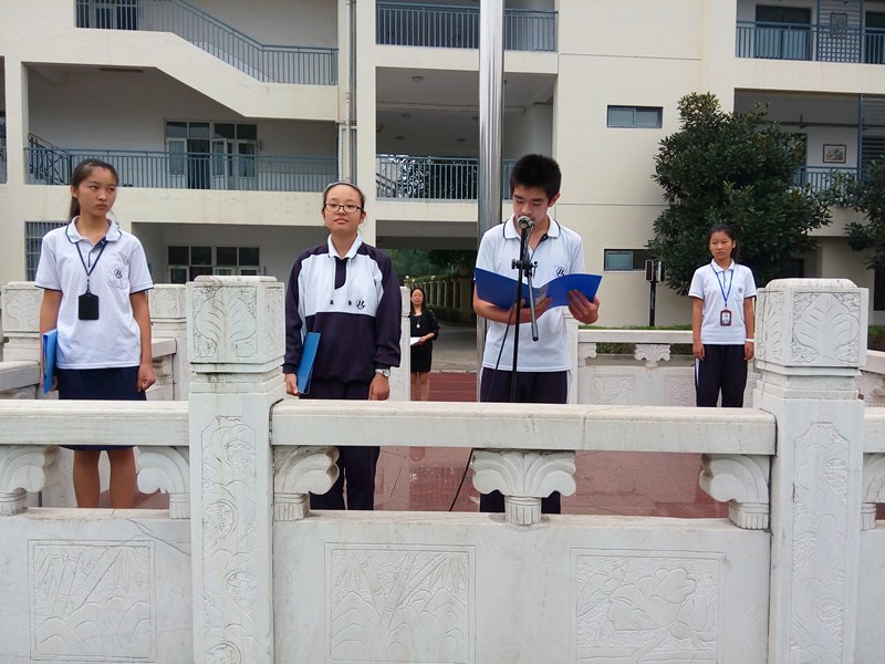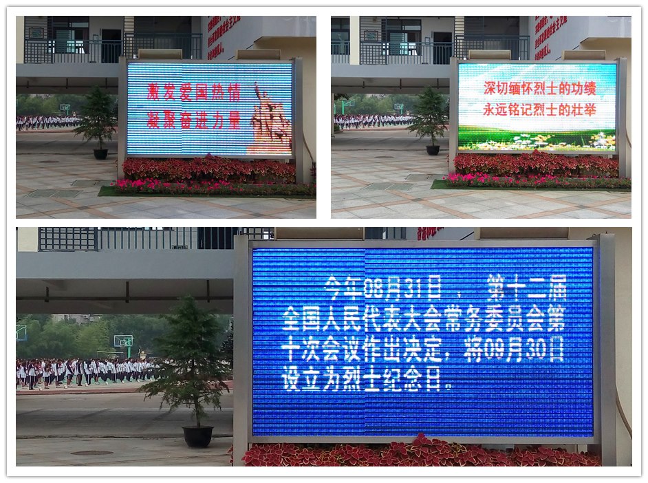 清晨的校园里,LED显示屏上的醒目的标语向同学们宣传着第一个烈士纪念日的知识,号召全体同学“深切缅怀烈士功绩,永远铭记烈士壮举”。庄严的国旗下,五星红旗冉冉升起,同学们沐浴着和平的光辉,内心更加升腾起一份感恩,一份崇敬,一份爱国的信仰。国旗下讲话学生代表九(3)班潘童、钱杰两位同学更是发出了“缅怀先烈,立志成才”的最强音。