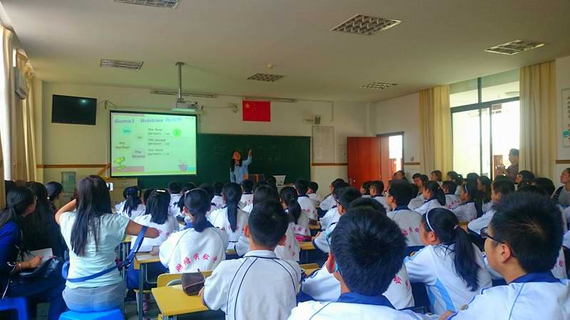 激情四射的英语课。在《7A Unit3 Grammar Personal pronouns》这课的教学中,薛原老师也尝试着尝试教学。她结合本学科的特点和七年级学生的年龄特点,以丰富的游戏式教学任务引导学生自学、尝试练习、讨论讲解、尝试巩固,过程紧凑,重点突出,内容扎实。课堂最后的“夏威夷草裙”活动将课堂气氛推向高潮。整节英语课,学生在“唱”中学,在“玩”中学,在“赛”中学,在互动中得到语言能力的提升。