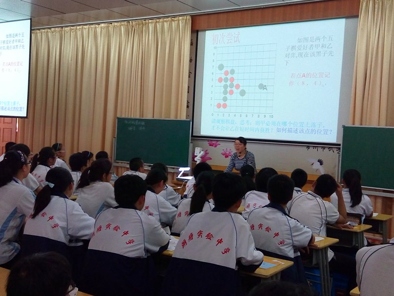 睿智有趣的数学课。葛娟萍老师在《物体位置的确定》一课中,以 “对号入座”、“五子棋对弈”等生活实践导入激发学生学习的兴趣;依靠导学案引导学生主动学习、合作探究;运用小组评价机制激励学生;使用当堂检测活用所学知识。整节课充分展现了教师的教学机智,课堂氛围活跃,学生积极参与,真正让学生在自主探究中学有所得。