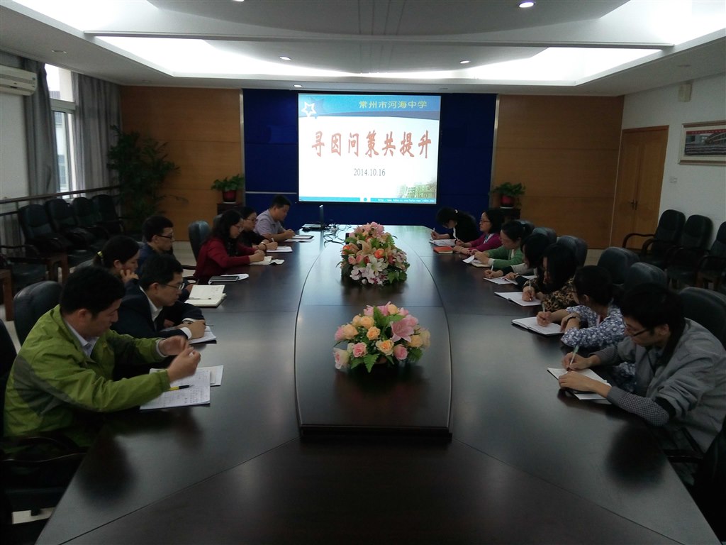 此次会议由两部分组成。第一部分由各备课组从学科角度作了分析发言。语文陈光华老师、数学葛娟萍老师、英语王丽君老师、政治高建文老师、物理许辉老师分别分析了本次单元调研的特点:基础与拓展并存、知识与能力并重;总结了开学以来学生在学习态度、习惯、方法等方面的表现;指出了在常规教育教学中存在的问题及不足;提出了改进的措施:加强集备、优势互补;立足课堂、提高效率;转变观念、培养能力;加强训练、促进发展;提优补差、缩小差距。