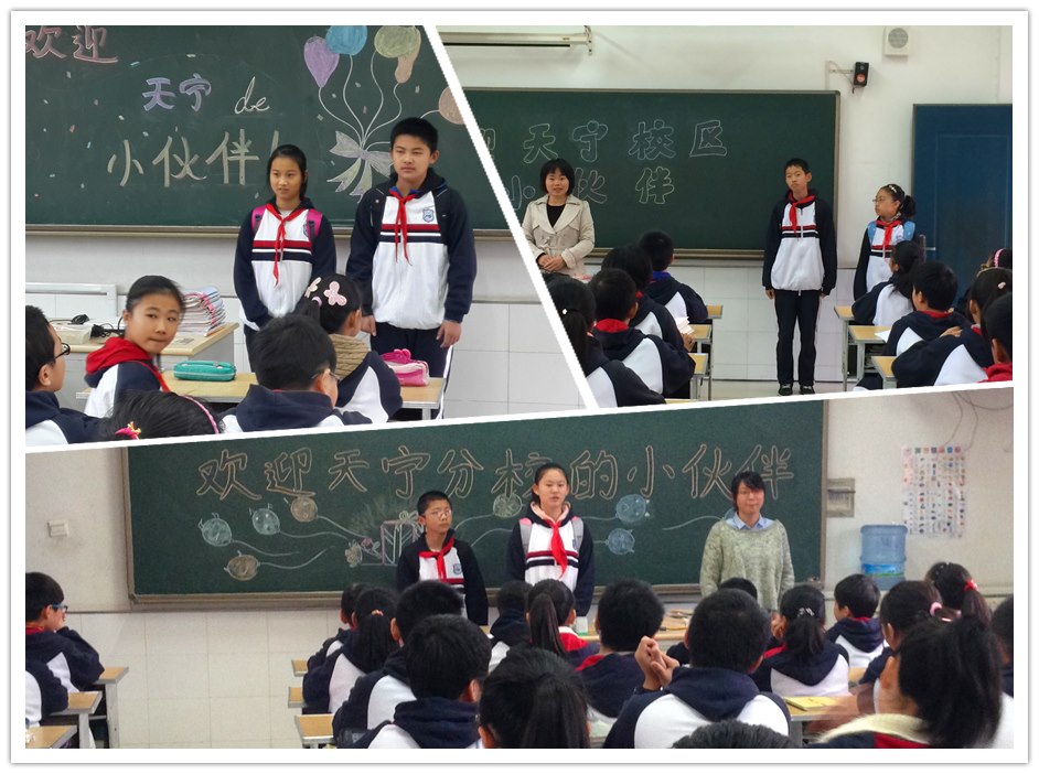 清晨的校园,朝阳映衬着六张灿烂的笑脸。那是七年级各班的班长在迎接他们的“客人”。没多久,天宁分校的小伙伴们如期而至,并走进了相应的班级。欢迎仪式上,他们自我介绍,侃侃而谈,感受到了各班同学如火的热情;课堂上,他们听讲专注,发言积极,展示着个人的自信与魅力;就餐时间,他们有序用餐,尽情享用,与小伙伴们享受着惬意的午间时光;体育活动,他们积极锻炼,参与运动,欢快的身影融入在河海的校园里。