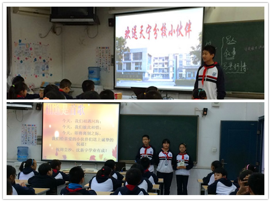 一天的时间是那么短暂,很快就到了依依惜别的时刻。欢送仪式上,天宁分校的小伙伴表达的是感谢与依恋,河海中学的同学们表达的是友爱与不舍,字字真切,句句动情。在同学们的陪伴下,天宁分校的小伙伴挥别热情的朋友,依依不舍地离开了河海的校园。我们知道,此时,友谊的花朵早已盛开在二十四中教育集团两校区同学的心中。
