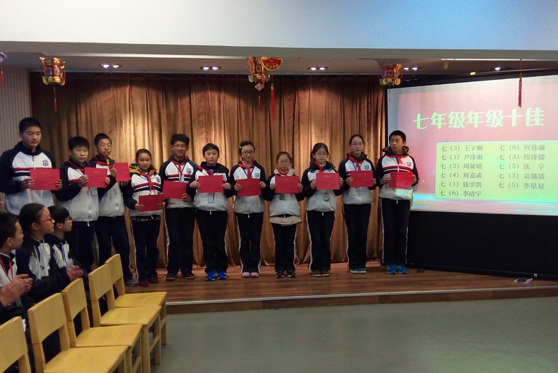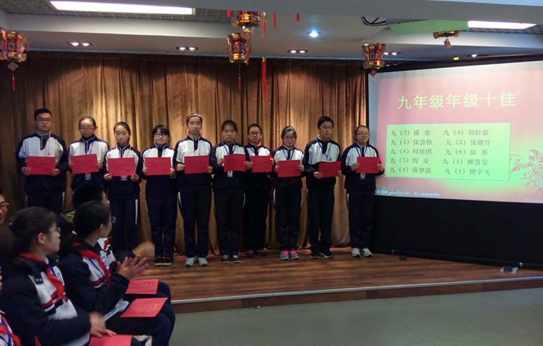 在表彰中分享成功。在过去的半个学期中,同学们积极参加省、市、区组织的各级各类比赛、活动,并取得了优异的成绩。大会首先对这些同学进行了表彰,那张张奖状都彰显了聪明能干的河海学子们的奋斗不息、收获不止。特别是 “年级十佳”的精彩亮相,让表彰大会达到高潮。七年级“年级十佳”带来河海版《我相信》,歌声悠扬,他们的自信让我们称赞;八年级“年级十佳”带来诗朗诵《走向远方》,铿锵有力,他们的士气让我们敬佩;九年级“年级十佳”带来励志赠言,意味深长,他们的毅力让我们信服;他们用自己的成功告诉同学们:机会垂青于有准备的人,相信自己,脚踏实地,昂扬斗志,明天会更精彩。
