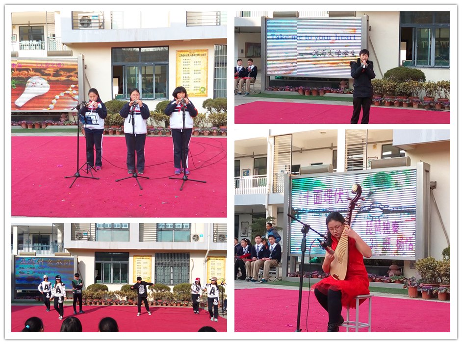 诗意的日子,如梦的年华,随着清风飘散蔓延。沐浴着冬日暖阳,我们放声歌唱;伴随着快乐歌声,我们健康成长。在新的一年到来之际,12月30日,我们河海中学迎来了2014年“我的舞台我精彩”校园文化艺术节文艺汇演。七八年级的全体同学齐聚小广场,用激昂的青春、热情的活力点燃自己无限的未来。本次汇演邀请了我校共建单位河海大学的部分学长学姐来校观演。