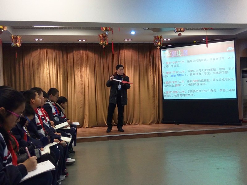 优秀学生经验介绍。为了提高同学们的复习效率,各年级的优秀学生代表精心准备,为大家最后阶段的复习支了几招。七(1)班韩雨晴同学从制定学习计划、加强实践管理、重视自我反思三方面介绍了自己自主学习的方法;八(3)班臧宇浩同学分享了自己提高学习效率的经验;九(2)班史唯科同学以自己的亲身经历告诫大家勤奋、独立、规划才是学习的三大法宝。榜样们毫无保留的支招让同学们给同学们的梦想之路增添了正能量。
