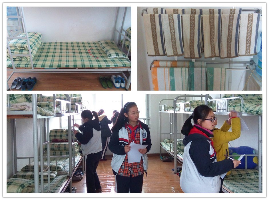 学习即生活,生活即教育。期末在即,学校为了使全体寄宿生学习、生活双丰收,01月22日中午,七八年级男、女12位室长在总务处的组织下,对学校52个寝室进行了检查评比。