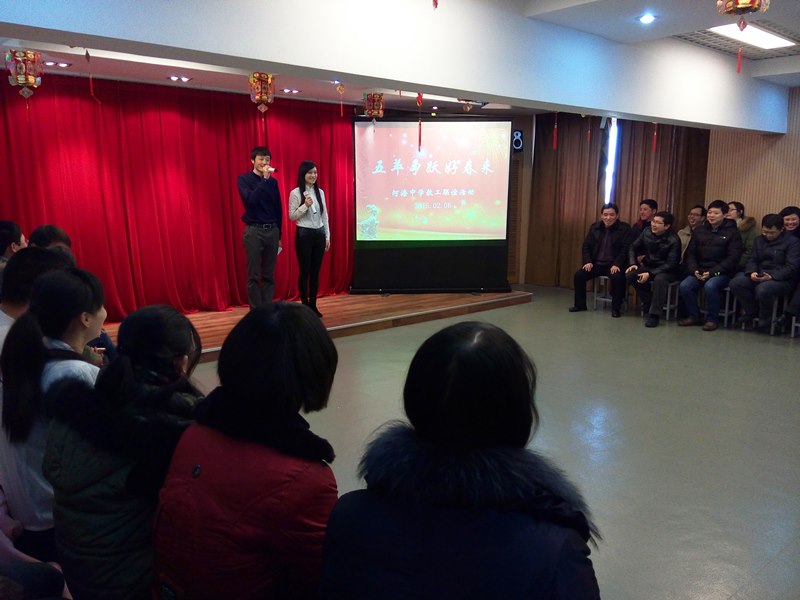 学期总结会后,我们终于盼来了期待已久的联谊活动。一台《五羊争跃好春来》的即兴表演在宋杰老师、沙明珠老师的主持下更添活力,全体教工在此刻真正感受到了轻松、温馨的喜庆氛围,合唱“幸福之歌”。