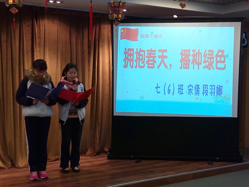 03月09日上午,利用升旗仪式正式启动了生命教育月。首先,七(6)班同学围绕生命教育月主题,进行了《拥抱春天,播种绿色》的国旗下讲话,倡议全体师生从身边做起,播种下希望的绿色,美化身边的环境,创造更美的风景。最后教导处戴亚萍主任作了动员讲话,她宣讲了学校生命教育月的方案,对后期将开展的活动作了部署。生命教育月中学校将开展更多丰富多彩的活动。如展开主题班会评比、参与心理团体辅导、七八年级心理拓展活动、九年级励志学生大会等一系列活动,评选校园“文明礼仪之星”和校园“美德少年”。相信通过此次的生命教育月活动,我们将学会感恩、保持阳光心态、坚持梦想、顽强拼搏,让青春踏歌而行,让生命绽放光华。