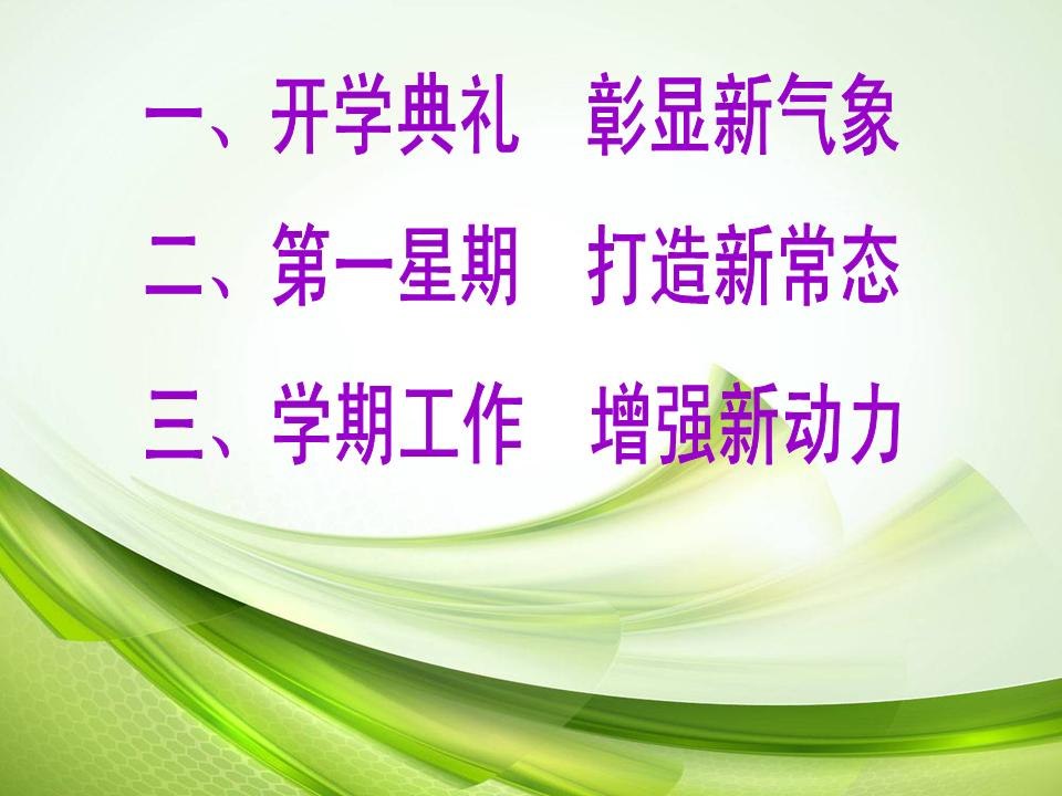 蒋校长结合开学一周以来的工作,就三个“新”由点到面做了细致地小结。第一,开学典礼彰显新气象。开学典礼凝聚了我校全体教工的心血,彰显我校拥有一支好团队,继承了一个好传统,赢得了一片好反响。开学典礼正体现了新学期新追求,新学期再创新辉煌。第二,第一星期打造新常态。从日常教育教学工作到学校后勤保障,从校内各项安排落实到迎接未成年人思想道德建设测评,我校开学以来各项工作有条不紊,常态中见创新,创新中见实效,为新学期营造了一个崭新的局面。第三,学期工作增强新活力。面对竞争激烈、充满挑战的新学期,蒋校长希望全体教工继续抓安全、保质量、重规律,强化常规,做好细节,为我校新发展注入新的活力。