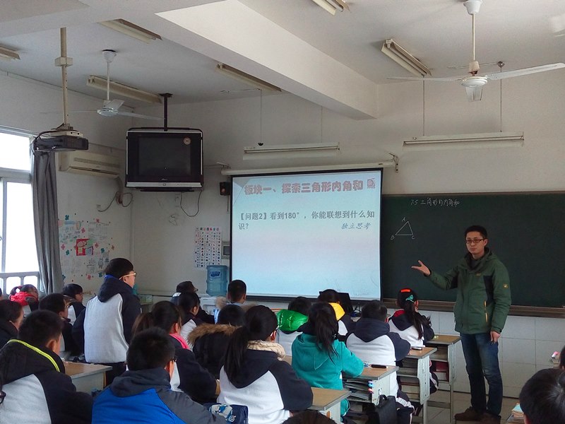 立足常态增加研究实效。活动首先由课题组核心成员、来自河海校区的周栋老师执教《三角形的内角和》,与其说是一节课题研究观摩课,不如说是一节数学常态课。从教学目标的确定到教学情境的创设,从问题的设置到重难点的突破,从例题的选择到课堂提问,既紧扣本课题研究的方向又彰显周老师一贯的授课风格。通过课题研究课向大家展示如何将课题研究与日常课堂教学紧密结合,实现以课堂实践促进课题研究,以课题研究提升课堂实践,增加了课题研究的实效。