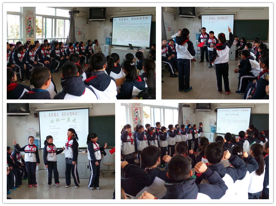 整个班队活动主题鲜明,内容丰富,形式多样。妙趣横生的小品、优美动听的歌曲、益智怡情的游戏、豪情满怀的宣誓等,无不显示着学生的多才多艺。学生绽放的每一寸笑容,说出的每一句话,无不诠释着对“生命”、“成长”的感悟,深深感动着大家,感动着校园。让我们看看小记者们前方的报道: