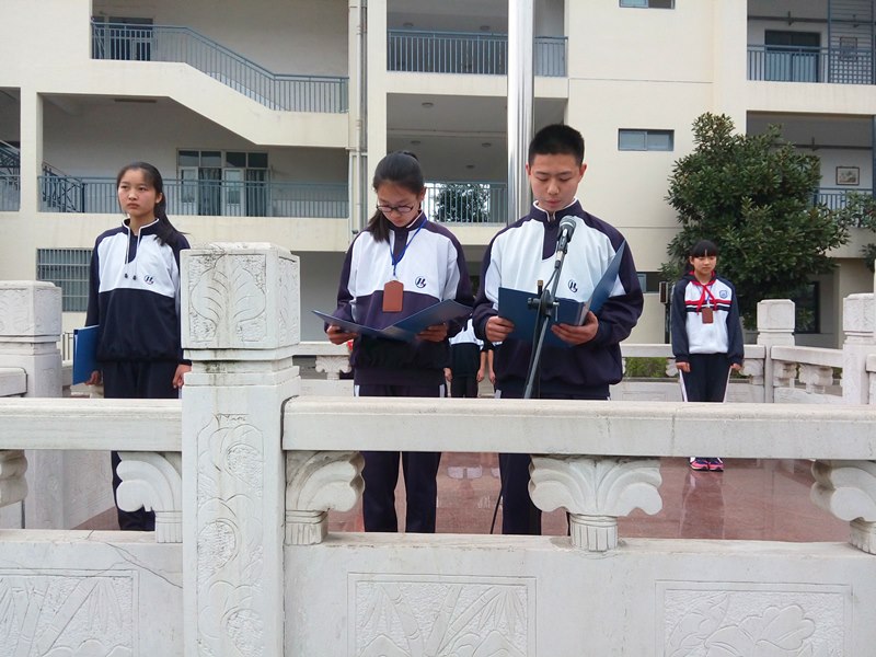 清晨,踏进校园,LED显示屏上“强化工作责任,确保师生安全”等宣传标语赫然映入眼帘,同时也提醒广大师生“安全在我心中,生命在我手中”。升旗仪式上,伴随着冉冉升起的五星红旗,全体同学激情高唱国歌,展现出生命的勃勃生机。九(3)班陆晓东、巢雨晴两位同学在国旗下精彩发言,建议全体师生:学习安全知识,强化安全意识,共同努力,创建和谐平安的校园。