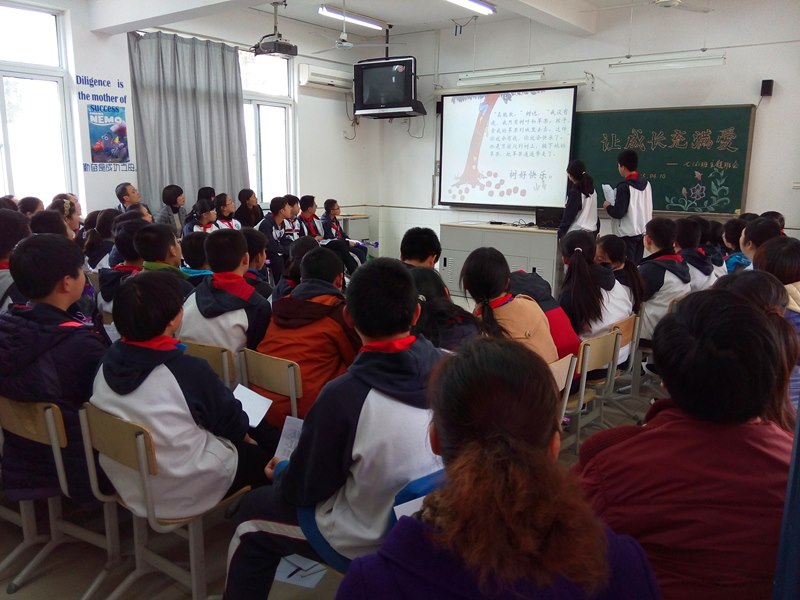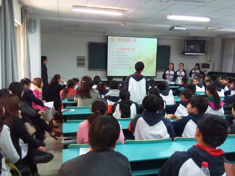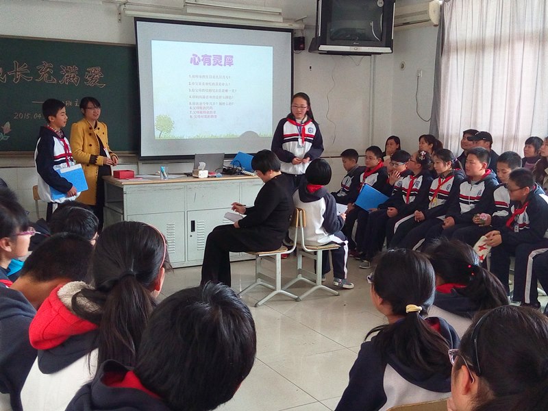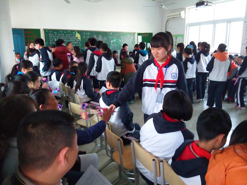 班会互动心连心。接着,各班以“让成长充满爱”为主题开展班会活动。新颖独特的形式,精彩纷呈的内容,让家长看的津津有味:一出出同学们自编自导自演的节目让家长感叹孩子的才艺;一段段同学和家长的真情告白让大家激动流泪;一首首歌曲唤起我们共同的心声……父母的寄望、亲情的感恩、游戏的互动,这一句句感人肺腑的话语,一阵阵情不自禁的掌声,一幅幅温暖人心的画面,将整个活动推向高潮。