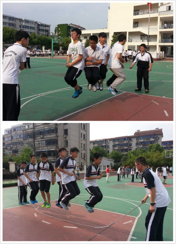 让我印象深刻的是集体跳绳比赛,只见各个队伍中五个跳绳的人就有不同的队形,有的呈直线型一字排开,有的以两个纵队开列,有的则尽量向中心靠拢,大家聚在一起。摇绳子的人在比赛中至关重要,不仅要统一力道,还要衡量好距离与高度,以保证跳绳的人在规定时间内跳出最多的个数。比赛过程中有人绊到绳子需要重新调整队形继续比赛,时间紧迫,有的队伍沉稳应对,有的队伍则乱了分寸,接连几次绊到绳子,这时场外的观众及时给予鼓励,为了顺利进行大家一起加油。