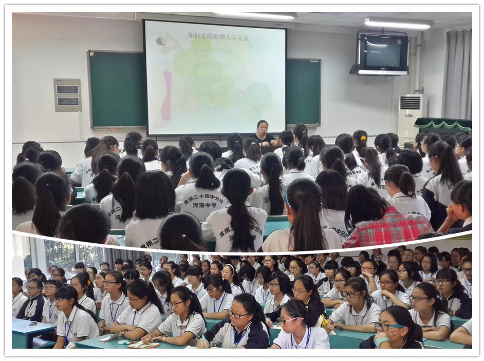 女生篇由刘旸老师主讲,主题是《做更好的自己》,通过问卷调查收集问题,分析女生青春期烦恼和青春期感到特别孤独的原因,帮助女生正确面对压力。她讲座中讲解了男女生“早恋”和“交往过密”的区别,引导学生如何正确处理男女生交往关系,让女孩子学会做一个优雅的女生。