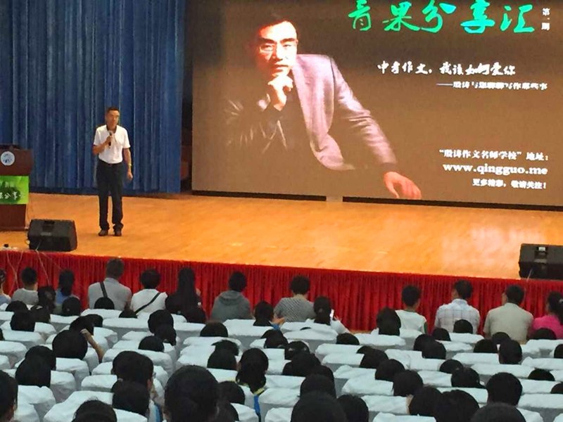 05月24日下午,青果分享汇首次线下活动在省常中艺体中心举行,由二十四中副校长,著名的“男神”教师殷涛主讲。话题是和即将面临中考的学生们聊聊中考写作的那些事儿。