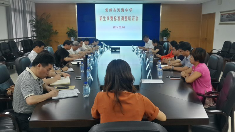 06月04日下午,常州市物价局在河海中学召开新生学费收费标准调整听证会,市教育局、新北区物价局、新北区教育文体局有关领导、市人大代表、政协委员、家长代表等共16人参加了会议,会议由市物价局收费管理处处长张小超主持,副局长初兆义到会讲话。本次会议是市物价部门和教育部门依据《民办教育促进法》、《民办教育收费管理办法》的有关规定,在先期组织成本核算、专家认证的基础上召开的。