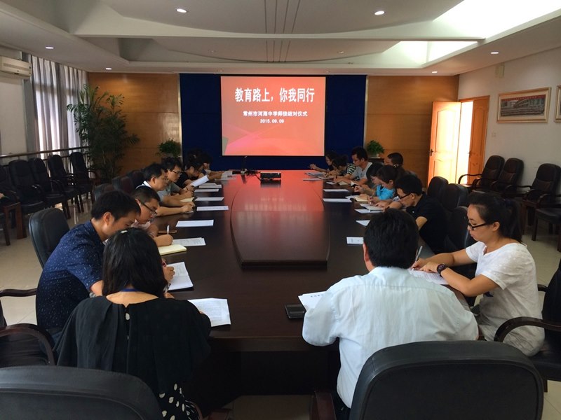 09月09日下午,河海中学举行了庆祝第31个教师节主题活动之“师徒结对仪式”。会议由办公室赵军主任主持,教导处戴亚萍、王国坚、芦启顺等三位主任出席。