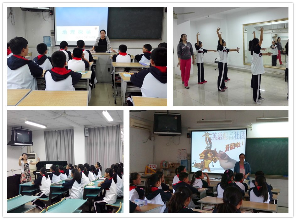 学校因地制宜地为七年级同学开设了如“英语电影配音”、“文学中的饮食文化”、“地理漫谈”、“美妙的生物世界”、“健美操”、“心晴驿站”、“水彩画”等17门风格各异的校本课程。丰富多彩的课程内容,独立自主的选课形式,活泼多样的课堂展示,为同学们的课余生活画上了浓墨重彩的一笔。