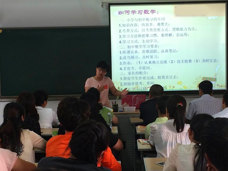 会议第二部分以班级为单位,由任课教师与家长进行面对面的交流。七年级是初中的起始阶段,走稳初中第一步至关重要。七年级主要学科老师结合开学以来孩子们学习中的问题,与家长们交流了中学学科的特点和学法,并提出了合理的方法和中肯的建议。家长们专注听讲、详细记录,从中也体悟到了初中学习与小学的不同,增强了家长帮助孩子走稳初中第一步的责任意识。