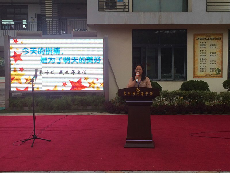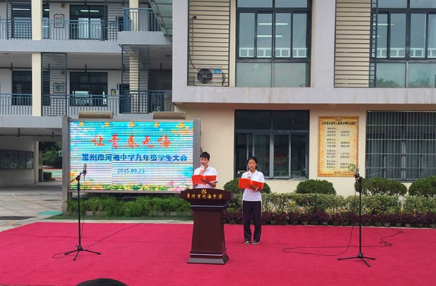 送走八月的炎阳,同学们对学习的热情依旧如火;迎来十月的秋风,同学们即将逆风而飞去采撷胜利的果实。为了帮助全体九年级同学走好人生道路上关键的一步,为他们的学习加油、鼓劲, 09月23日,常州市河海中学举行了隆重的九年级学生动员会。