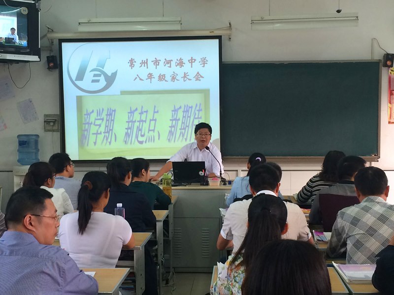 学校行政推动,高屋建瓴明方向。下午三点整,河海中学王强副校长代表学校向全体家长作报告。王校长先对八年级的学情进行了详细的解读,强调八年级是一个极其重要的学习阶段;接着以一段视频为切入点,引出“言传身教”的永恒命题,希望家长重视家庭教育;然后与家长们交流了学生在八年级有可能发生的变化,并结合心理学提醒家长们关注这些变化前的显著现象;最后从学习习惯、生活习惯、饮食习惯、卫生习惯等方面引导家长积极、正面地开展家庭教育工作。王校长的讲话实在而又引人深思,得到了家长们的高度认可。