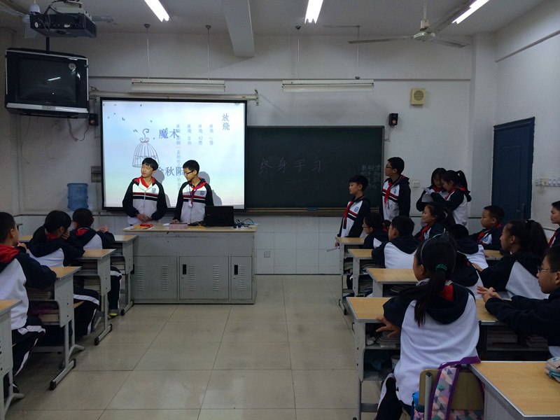 最后一环节同学们的文学展示则令我对每个同学都刮目相看,这个背上了李白的《蜀道难》,那个开始回忆起《木兰辞》,我不得不惊叹同学们的文学积累,为他们送上了热烈的掌声。