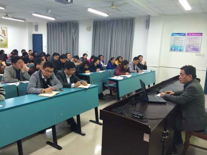 首先由起草工作小组组长赵军主任作题为《制定三年发展规划,营造良好教育生态》的宣讲。赵主任详细阐述了规划的起草过程和结构内容。他重点围绕“传承理念、立足校情、发展课程、发展队伍、加强保障”五个关键词进行了深入细致的讲解。