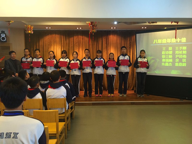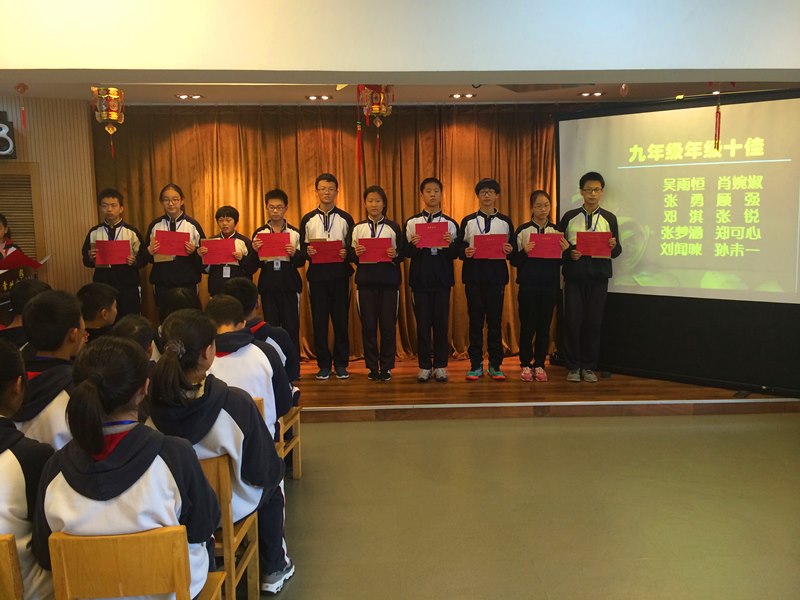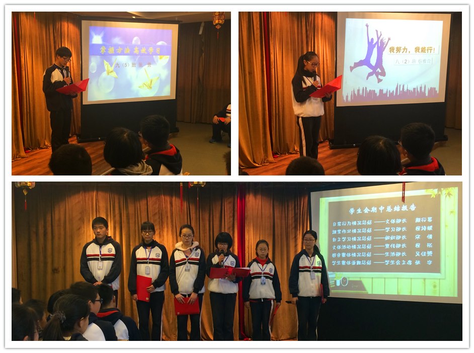 总结经验,放飞梦想。各年级十佳和获得单项奖的同学们的成功让每位同学都有了更明确的目标,其中优秀学生代表八(2)班的蔡雅萱与九(5)班的张勇分享了他们在这次期中调研中的复习心得和成功经验。“投入课堂”、“积极复习”的学习态度让蔡雅萱受益匪浅;“掌握方法”、“高效学习”的学习策略也让张勇收获颇丰。他们用自身成功的例子告诉我们要脚踏实地的做好每件事,一分耕耘一分收获,只有掌握良好的学习习惯与方法,只有保持好的学习心态,才会有更显著的提升。学生会主席张宇和各部长也给予我们肯定,并给我们提出了更高的要求,殷切地希望我们朝着自己的梦想,向更高一级的台阶迈进。